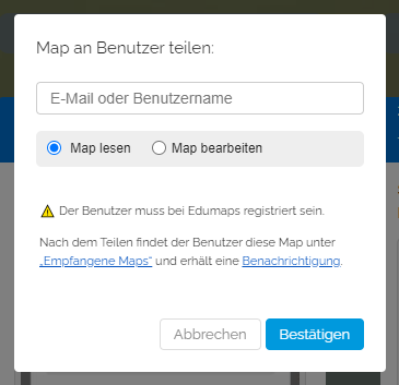 Der Nutzer muss bei Edumaps bereits registriert sein.
