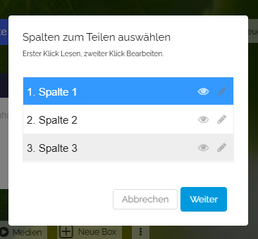 Tipp: Alle erzeugten Links lassen sich im Nachgang bearbeiten und die Spaltenzugriffe ändern. Klicken Sie hierzu einfach auf „Spaltengruppe teilen“ und dann in der Übersicht beim entsprechenden Spaltenlink auf Bearbeiten.