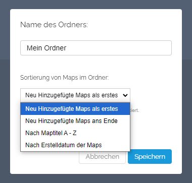 Sie haben die Möglichkeit, die Sortierung der Maps im Ordner zu verändern.