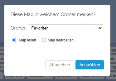 Map einem Ordner hinzufügen mittels Dropdown „Merken“