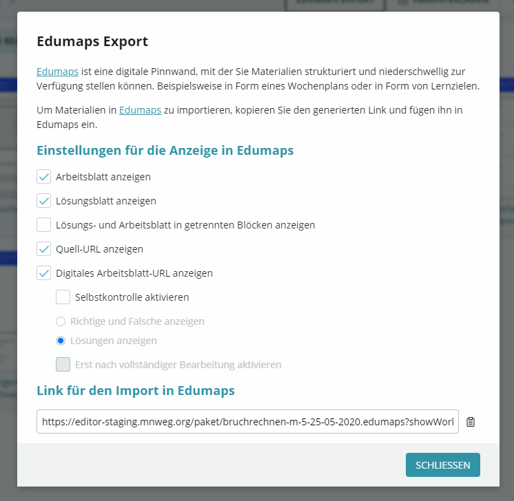 Bestätigen Sie und der Edumaps-Server importiert die gesamte Sammlung an Arbeitsblättern gemäß Ihren Einstellungen automatisch.