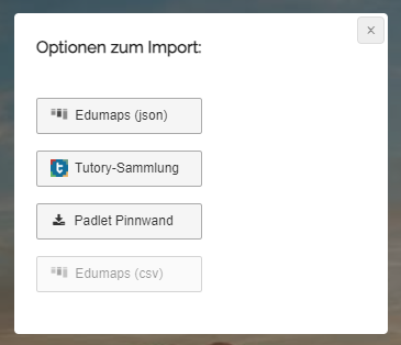 Wählen Sie „Tutory-Sammlung“. Daraufhin öffnet sich ein Dialog mit Eingabefeld. Dort ist der Edumaps-Export-Link von Tutory einzutragen.