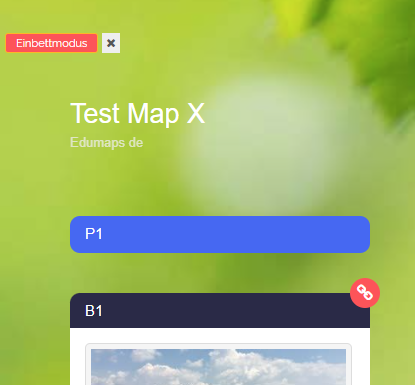 Wollen Sie den Einbettmodus abbrechen, so können Sie links oben auf den roten Banner „Einbettmodus“ klicken. Dies beendet den Einbettmodus und Sie kehren zu Ihrer Map zurück