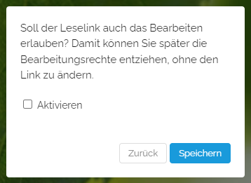 Wollen Sie später dann das Bearbeitungsrecht wieder entziehen, deaktiveren Sie die Option entsprechend. Damit gibt der Leselink wie gewöhnlich auch nur Leserechte.