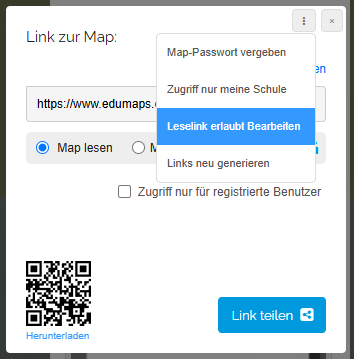 Sie können Ihre Map per Link teilen, wobei Ihre Schüler zuerst Bearbeitungsrechte haben und Sie den Link später auf Leserechte herunterstufen können.