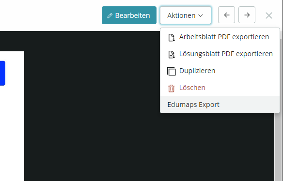 - Anschließend finden Sie rechts oben unter „Aktionen“ die Auswahl „Edumaps Export“.